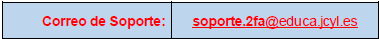 Puedes hacerlo directamente escribiendo un correo-e a la dirección de soporte del Doble Factor de Autenticación (2FA): soporte.2fa@educa.jcyl.es indicando que no te funcionan los códigos del Autheticator.